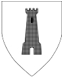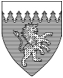 Blazon: Azure, an Ouncelot rampant proper, crined, brushed, hackled, bearded, and armed argent, langued gules, a chief indented flory at the points argent.