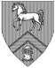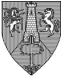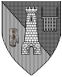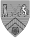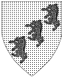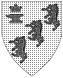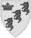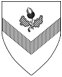 Blazon: Azure, an Ouncelot rampant proper, crined, brushed, hackled, bearded, and armed argent, langued gules, a chief indented flory at the points argent.